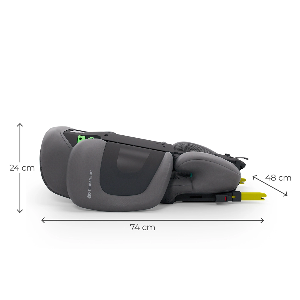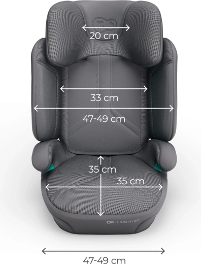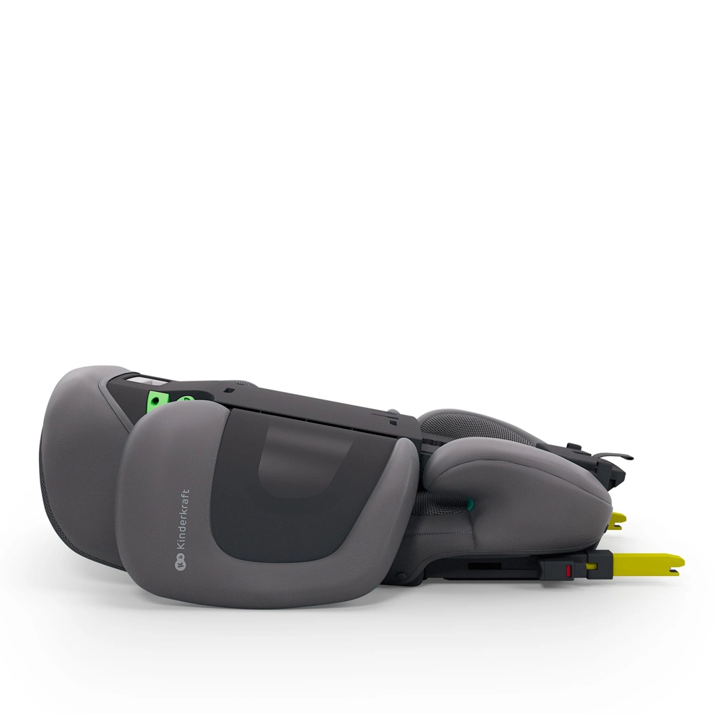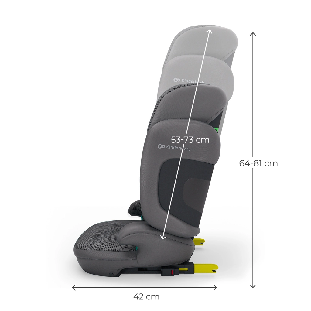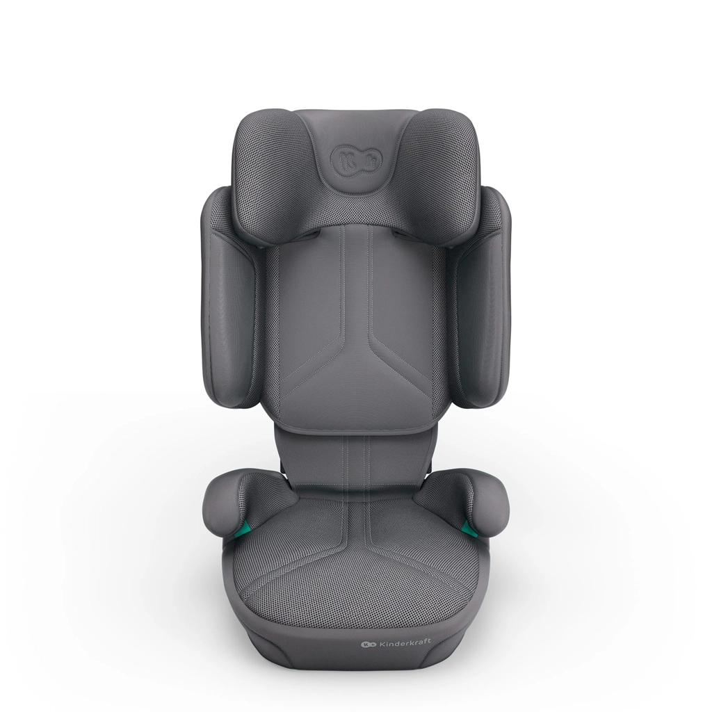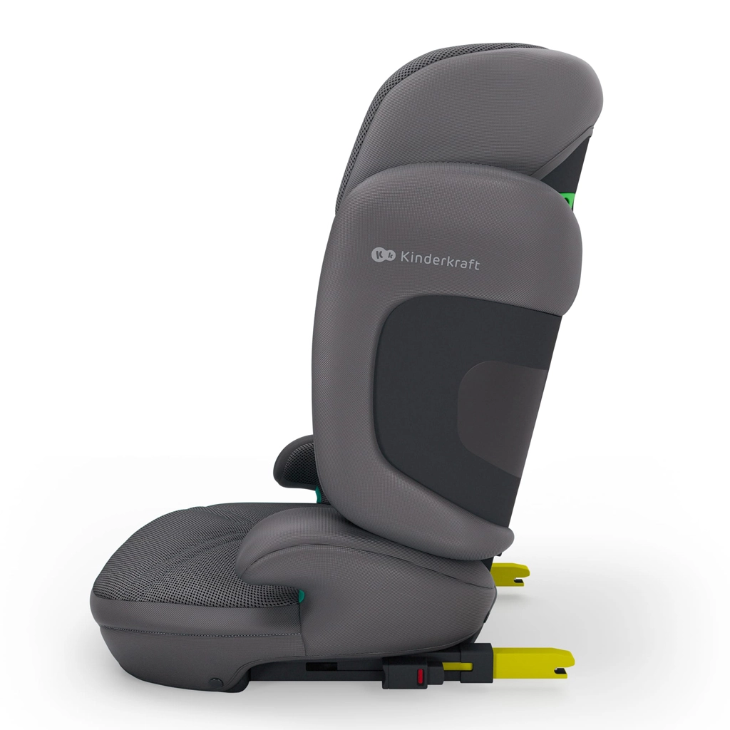 Husele premium cu tehnologia AIR FLOW sunt respirabile, ușor de curățat și, împreună cu șezutul ergonomic lat, asigură confort chiar și pe trasee lungi. Scaunul se instalează rapid cu ISOFIX și centura auto în 3 puncte sau doar cu centura – soluție ideală când schimbați des mașinile. Practică este și construcția pliabilă la format plat pentru depozitare și transport ușor.