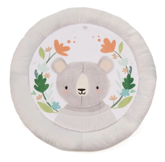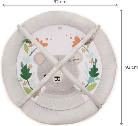 Suprafața rotundă, confortabil capitonată, cu materiale plăcute oferă bebelușului un spațiu primitor pentru joacă și odihnă.