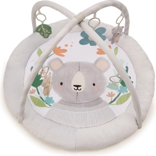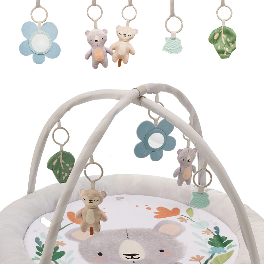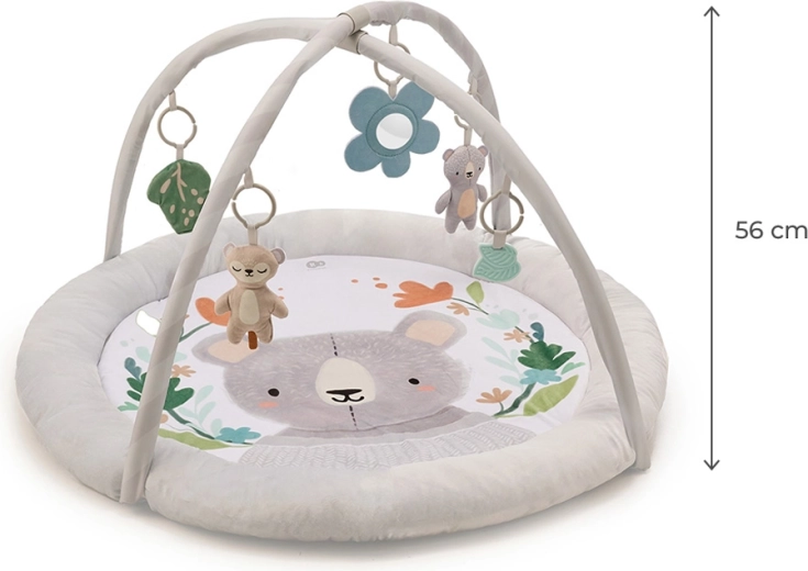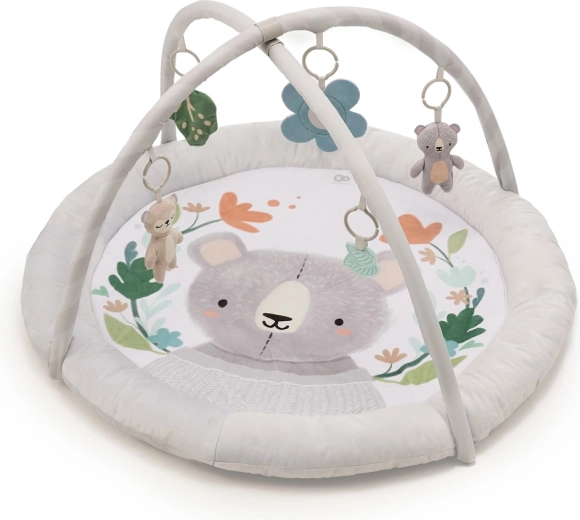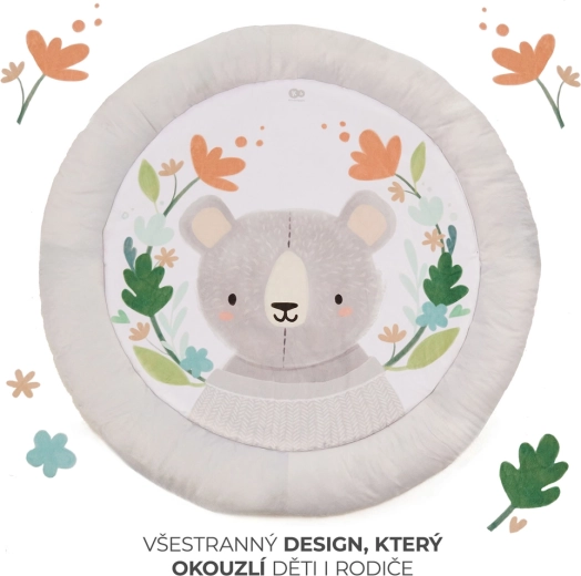 Salteluța de joacă COZYPLAY îmbină confortul, siguranța și designul. Suprafața rotundă, bogat capitonată, cu ilustrații create de un artist european, creează un loc primitor pentru joaca pe burtică, primele prinderi și relaxare. Cele două arcade moi permit suspendarea variabilă a jucăriilor, adaptând stimulii la vârsta și abilitățile bebelușului.