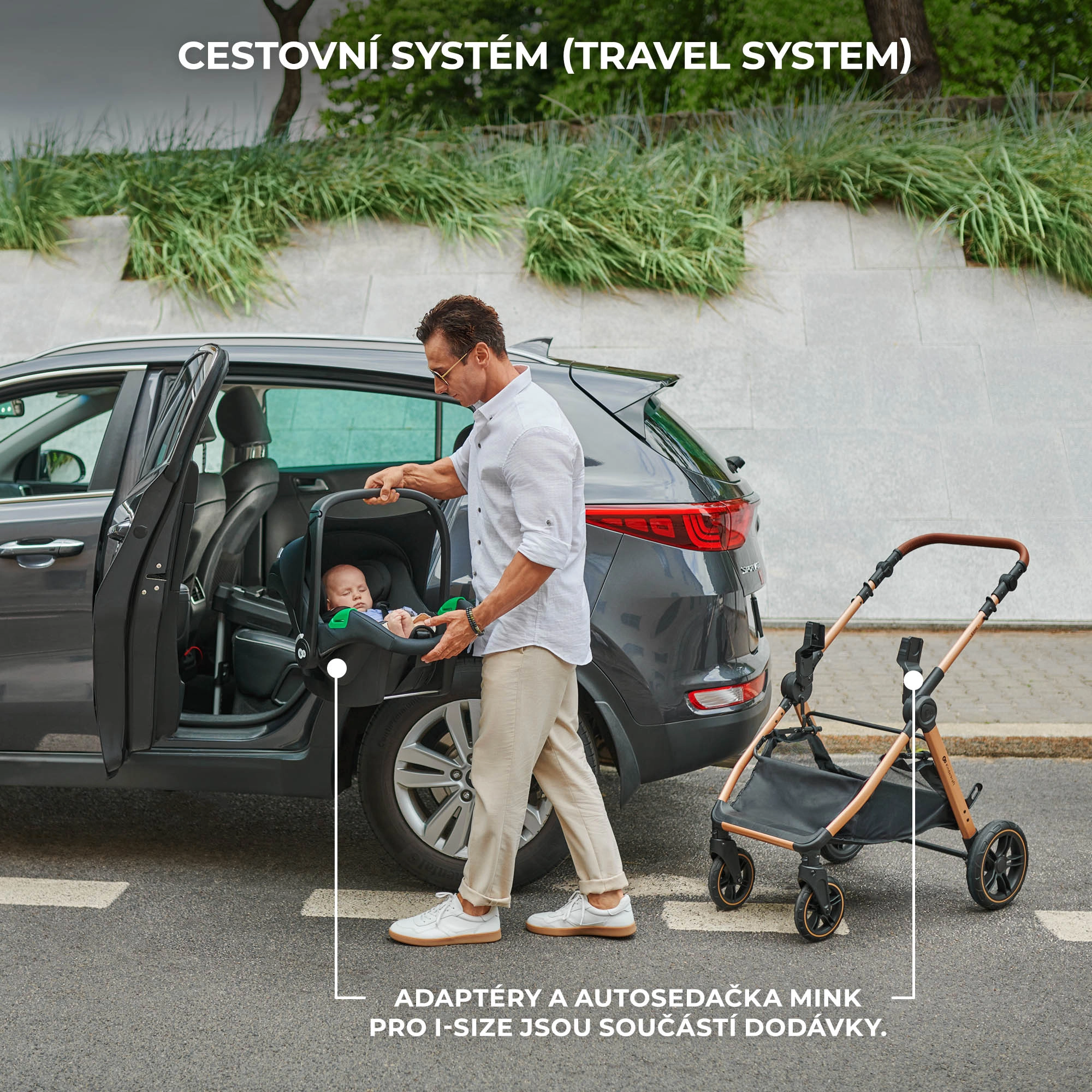 TRAVEL SYSTEM în pachet – include scaun auto MINK PRO 2 i-Size (40–87 cm) cu adaptoare. Datorită lui, transferați bebelușul adormit din mașină pe cadrul căruciorului fără a-l trezi. Siguranța este asigurată de sistemele H-GUARD+ și SPS+, iar mersul cu spatele la direcția de mers (RWF) este de până la 5 ori mai sigur. În plus, în pachet primiți suport pentru băuturi, husă pentru picioare, husă de ploaie și geantă practică.