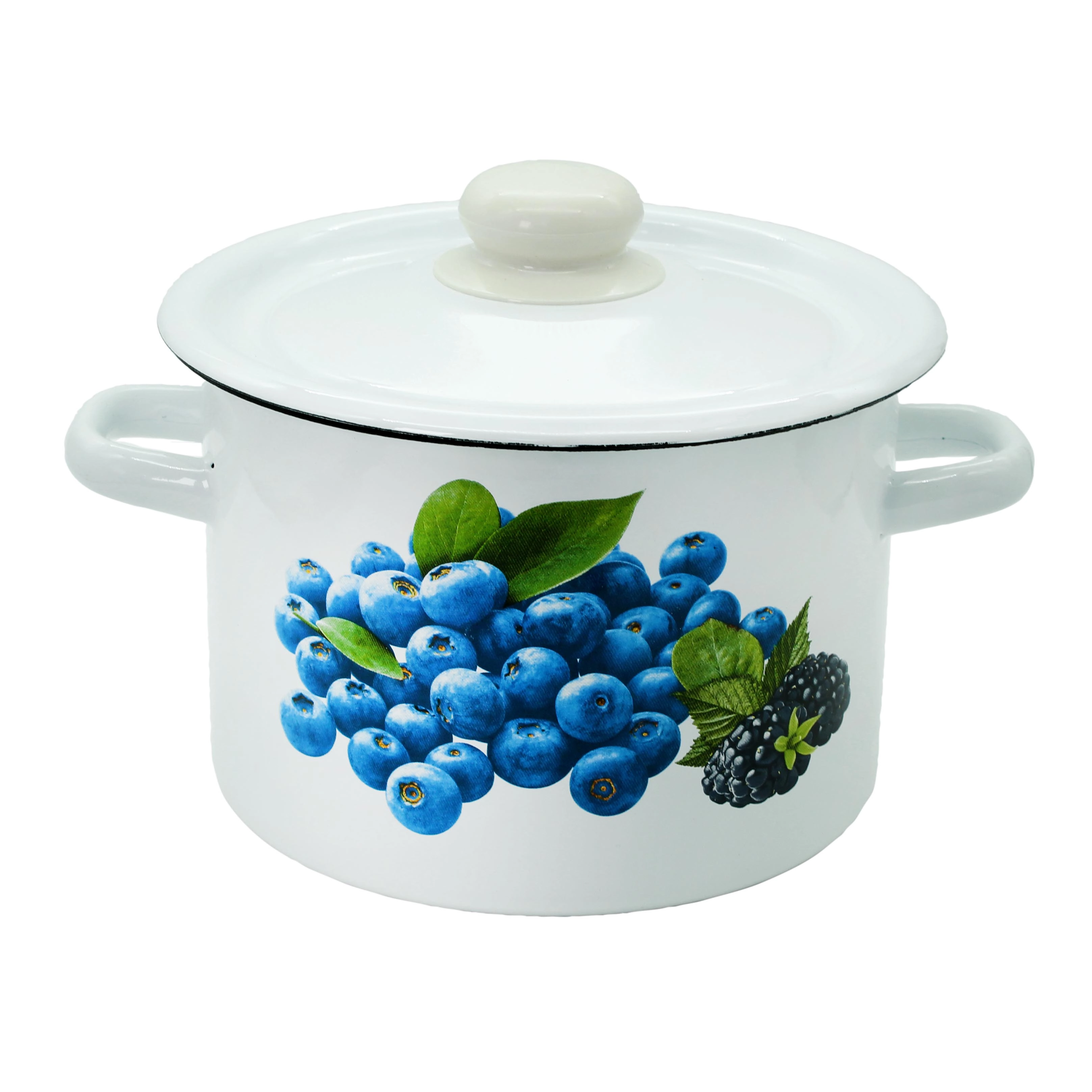 Descoperiți o oală fiabilă cu capac, care se descurcă cu totul, de la supe și sosuri până la porții consistente pentru întreaga familie. Suprafața emailată este cunoscută pentru durata lungă de viață, rezistența la zgârieturi și curățarea facilă, păstrând un aspect curat datorită finisajului alb cu motiv decorativ cu fructe.