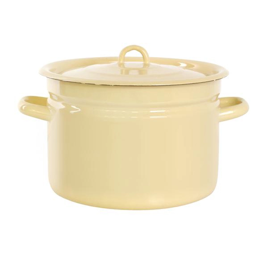 Ceaunul tradițional emailat cu volum de 9 l este ideal pentru gătitul zilnic. Oferă distribuție uniformă a căldurii, este potrivit pentru toate tipurile de plite, inclusiv cu inducție și, datorită celor două mânere solide, permite o manipulare sigură. Elegantul finisaj bej cu decor de legume va înfrumuseța orice bucătărie sau casă de vacanță.