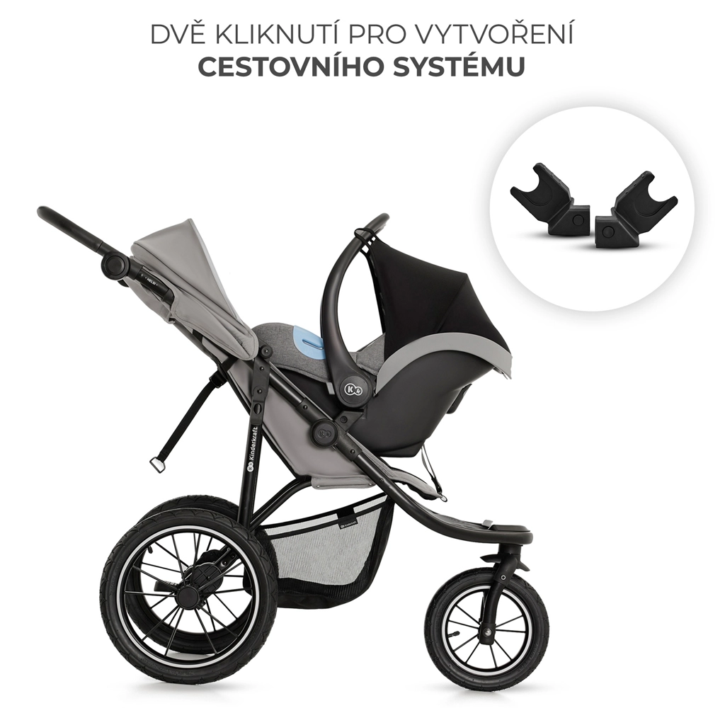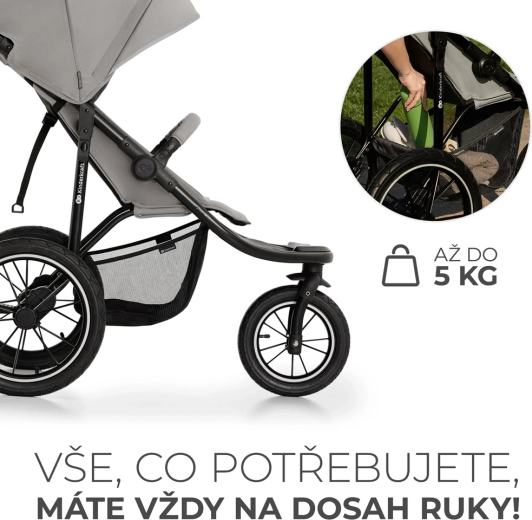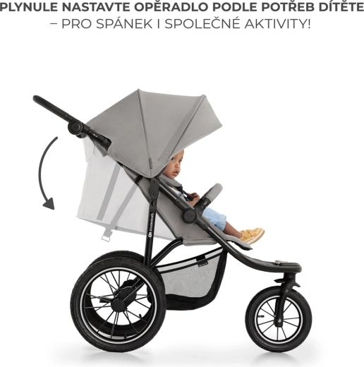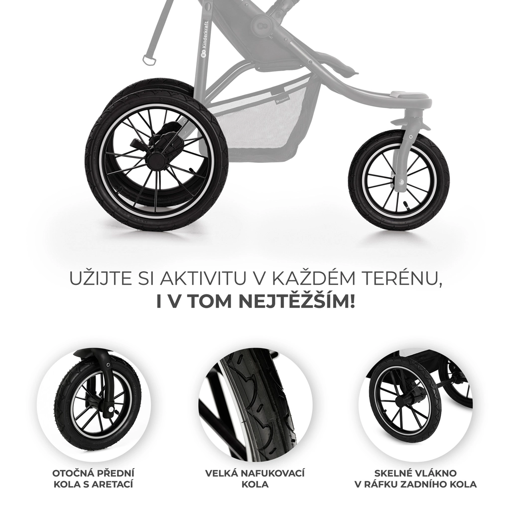 KINDERKRAFT HELSI 2 este un cărucior sport pentru teren, proiectat pentru o deplasare lină atât pe asfalt, cât și pe poteci de pădure. Trei roți mari gonflabile cu suspensie excelentă și roțile din spate ranforsate cu fibre de sticlă asigură stabilitate și confort pentru copil și părinte. Cadrul solid din oțel, frâna ușor de folosit și elementele de siguranță, inclusiv centuri în 5 puncte și bară de protecție, aduc un plus de încredere la fiecare pas.