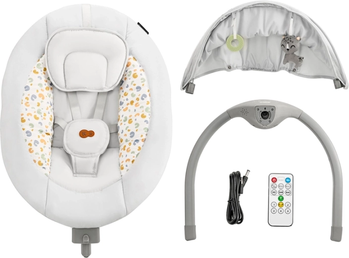 - Control ușor: 5 viteze de legănare, 12 melodii, reglarea volumului, temporizator și telecomandă.