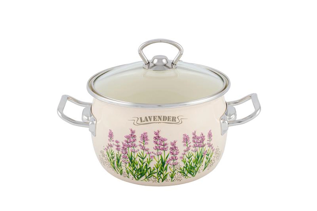 Descoperiți un accesoriu practic și stilat pentru bucătărie: oală bombată emailată cu decor elegant Lavandă. Datorită emailului de calitate, este rezistentă la zgârieturi și ușor de curățat, în timp ce capacul din sticlă permite să aveți mereu gătitul sub control. Volumul de 2,5 litri este perfect pentru supe, sosuri și gătitul zilnic pentru familie.