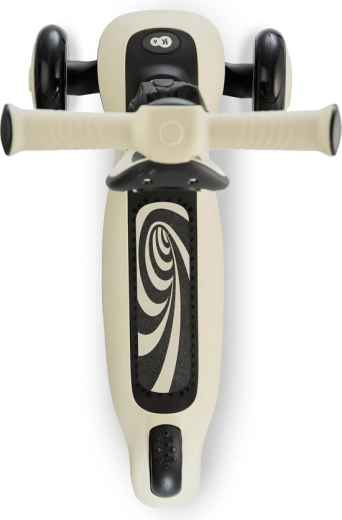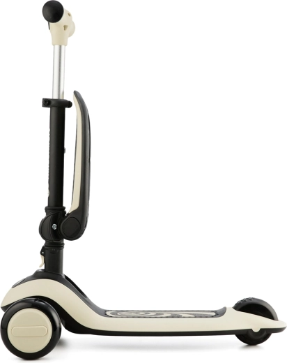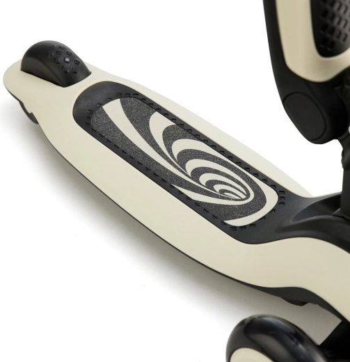 Șeaua rabatabilă permite trecerea ușoară de la vehiculul de împins la trotinetă și invers – în funcție de preferințele și vârsta copilului. Un singur produs, distracție dublă.
