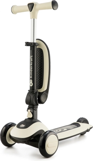 KINDERKRAFT HALLEY îmbină distracția, confortul și siguranța într-o soluție inteligentă. Într-o clipă comuți de la modul vehicul de împins la trotinetă triclă – este suficient să ridici sau să cobori șeaua integrată. Cele două roți frontale mari cu iluminare LED sporesc vizibilitatea și oferă stil, în timp ce platforma joasă, antiderapantă și frâna spate susțin stabilitatea și încrederea micilor începători.