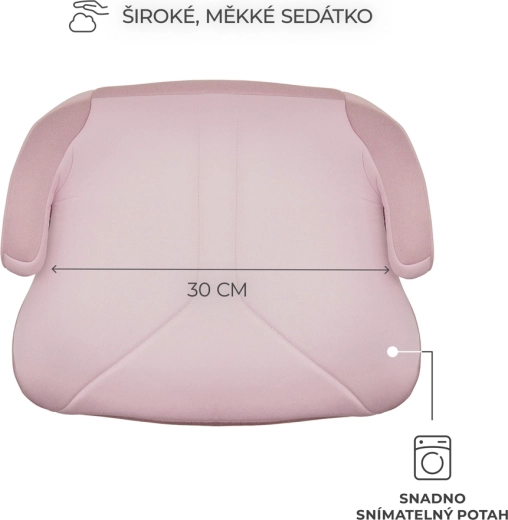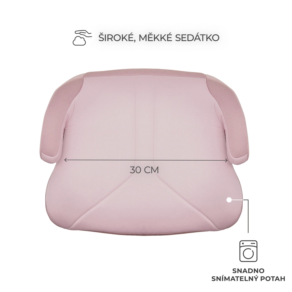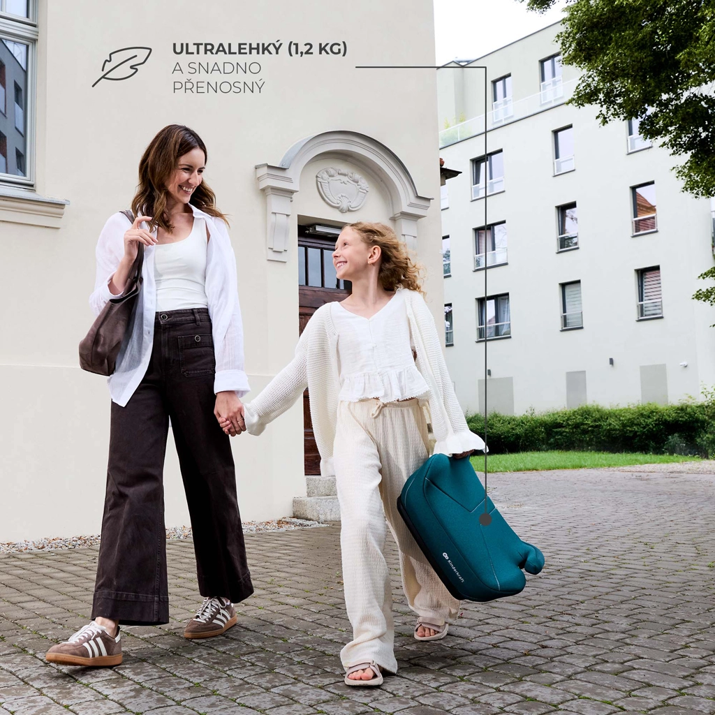 Șezutul este ultra-ușor (1,2 kg), astfel încât poate fi mutat ușor între mașini. Instalarea este intuitivă cu centura de siguranță în 3 puncte, în timp ce șezutul lat și moale din spumă de calitate asigură confort chiar și la drumuri mai lungi. Mânerele ergonomice ajută la ghidarea centurii la înălțimea corectă, iar husa detașabilă poate fi spălată la mașină.