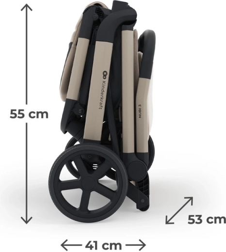 Kinderkraft NUBI 3 este un cărucior sport premium pentru părinți activi, care doresc să îmbine stilul, funcționalitatea și siguranța. Noul cadru ușurat se pliază complet singur la apăsarea unui singur buton și rămâne stabil în poziție verticală după pliere. Datorită roților EVA mai mari, cu suspensie (6,3”/7,6”), abordează cu ușurință trotuarele, pavajul și bordurile, în timp ce plasa 3D respirabilă din scaun menține un climat plăcut pe tot parcursul anului.