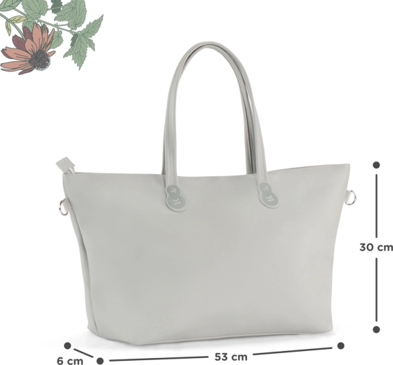 Geanta se atașează ușor pe mânerul căruciorului cu ajutorul prinderilor incluse sau poate fi purtată confortabil pe umăr cu cureaua lungă. Materialele rezistente la abraziune se întrețin simplu – este suficientă o lavetă umedă. În pachet găsești și o practică salteluță de înfășat pentru călătorie, pentru schimbare igienică oricând și oriunde.