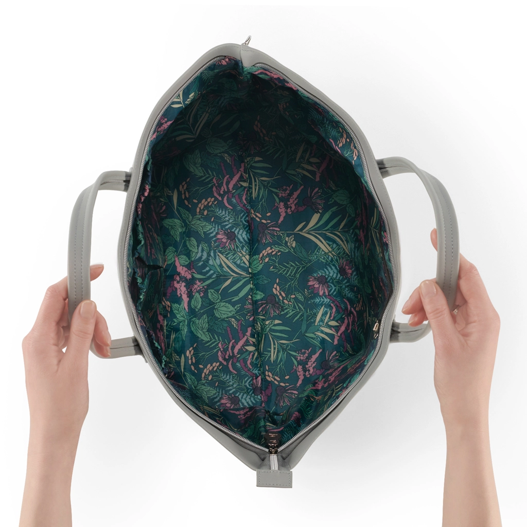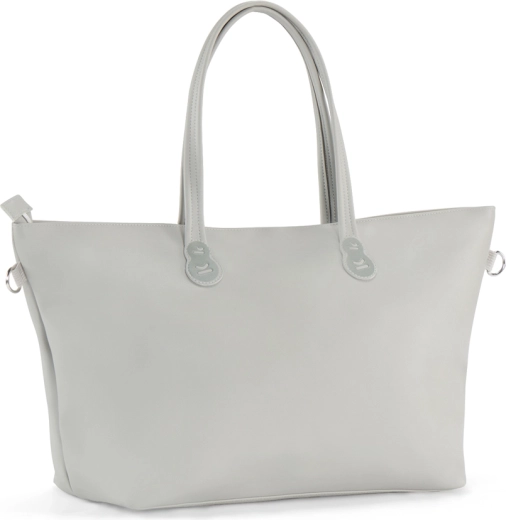 Datorită prinderilor speciale, geanta se atașează ușor de mânerul căruciorului sau poate fi purtată pe umăr cu cureaua lungă.