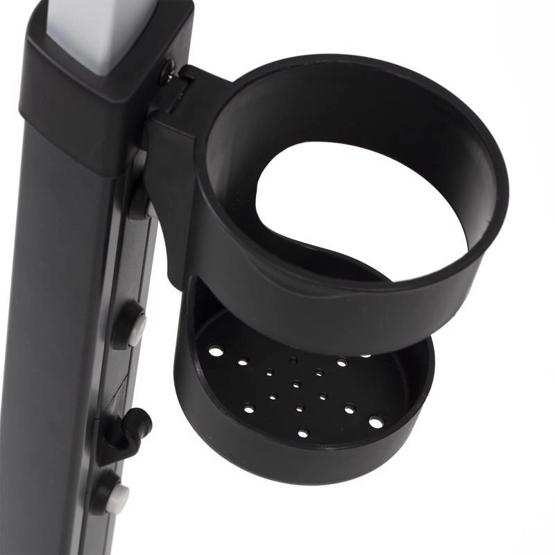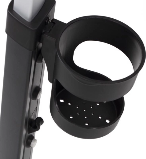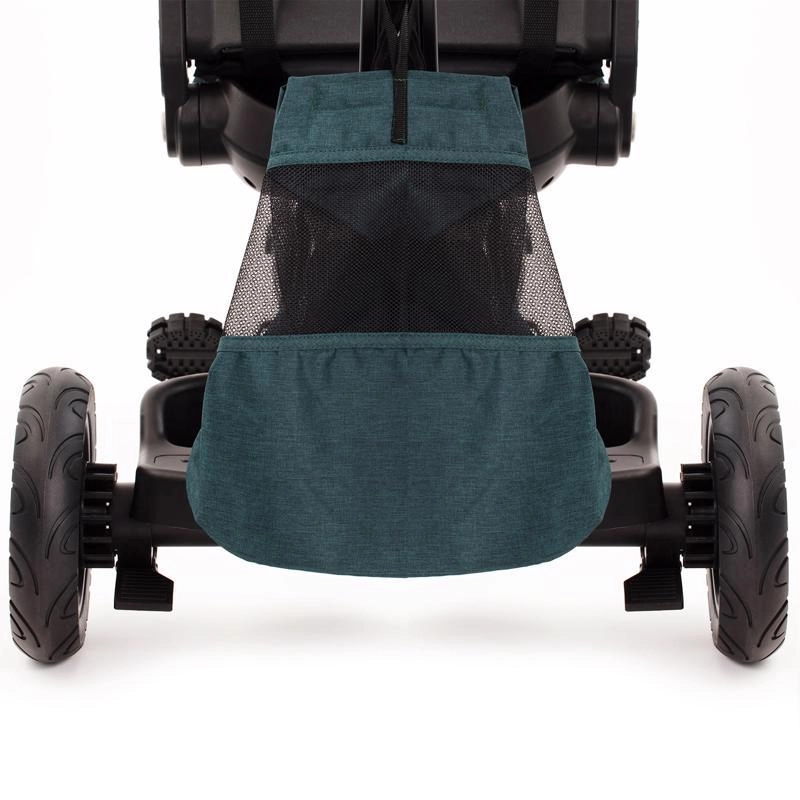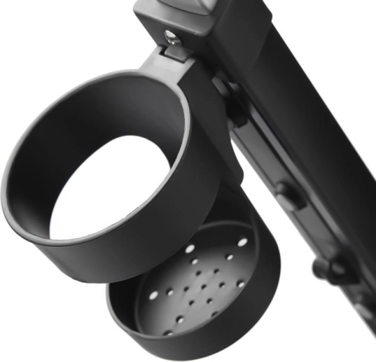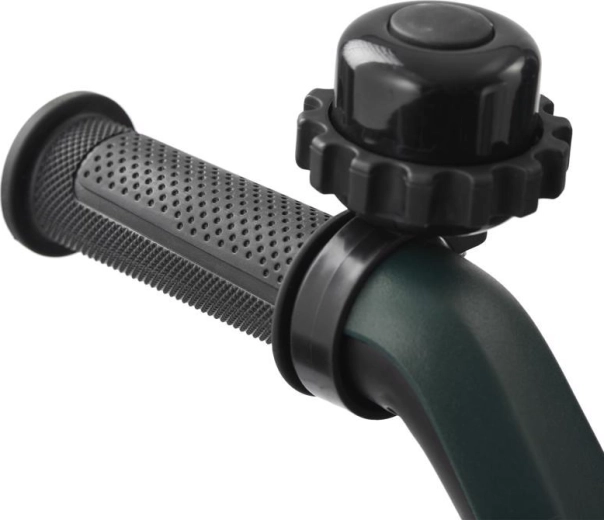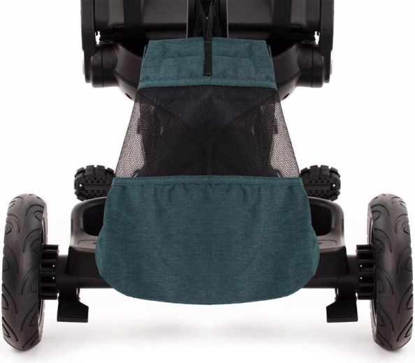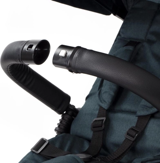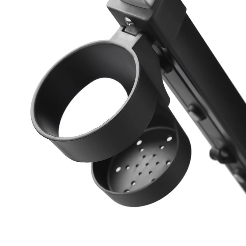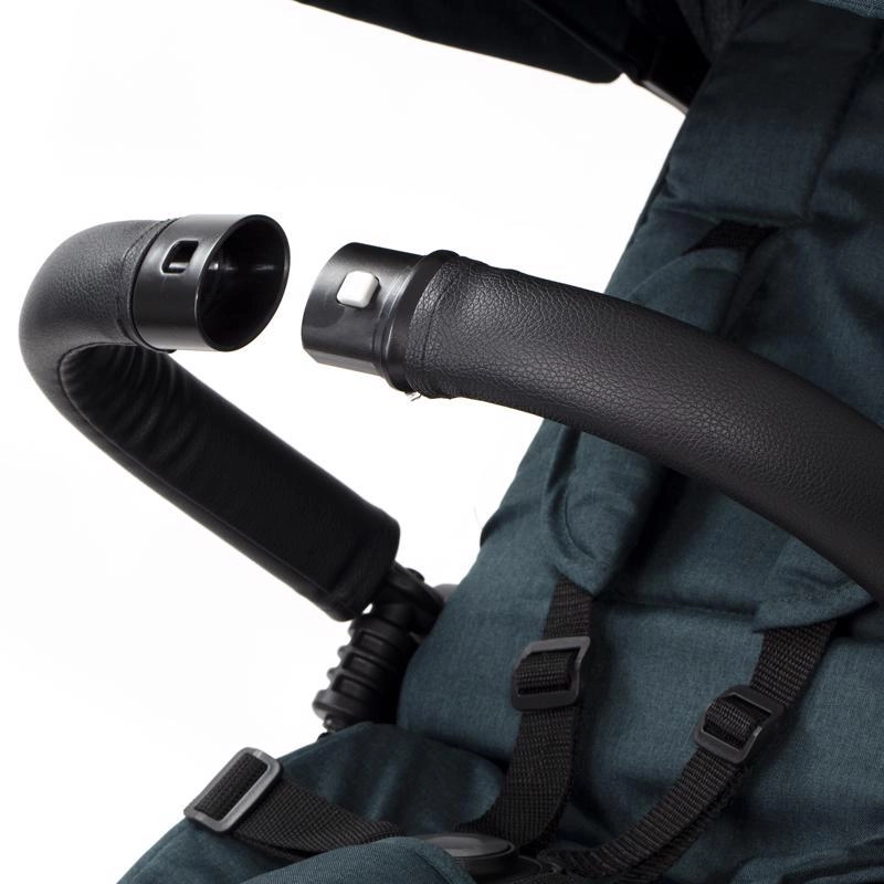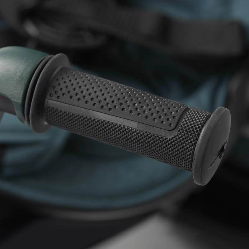 Mâner telescopic cu butoane pentru reglare rapidă, frână de parcare și accesorii bogate: suport pentru băuturi, sonerie, geantă/rucsac și coș.