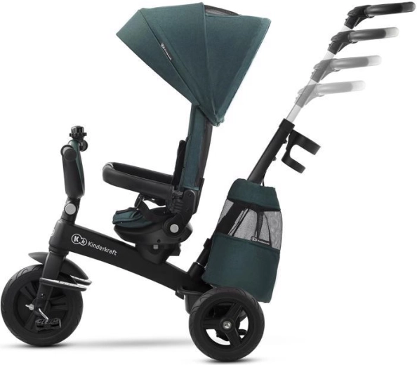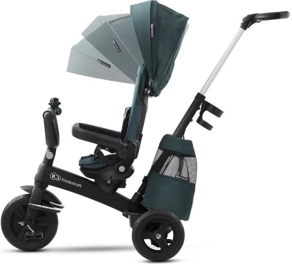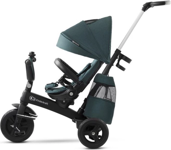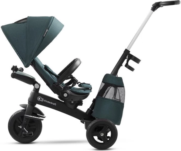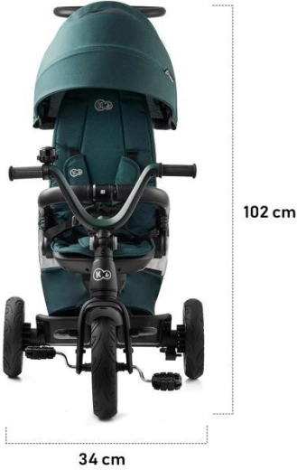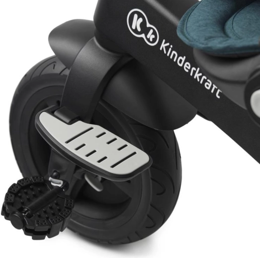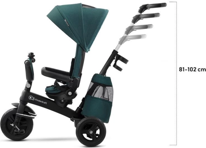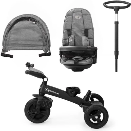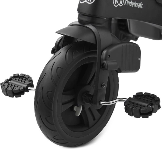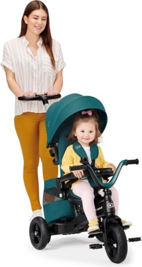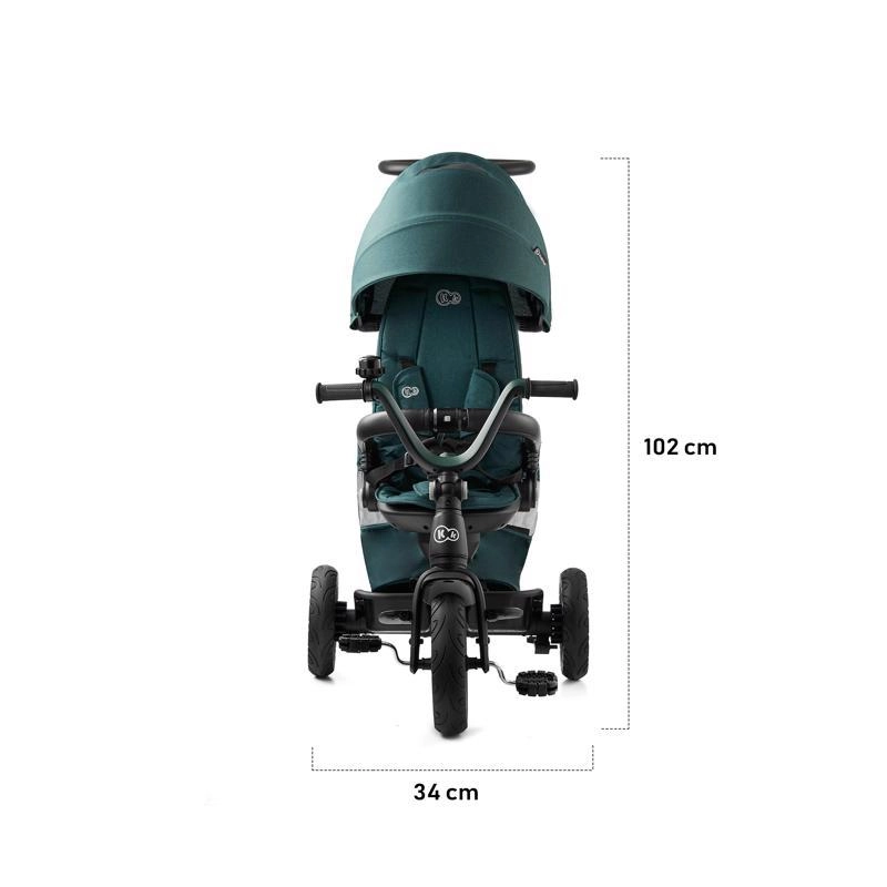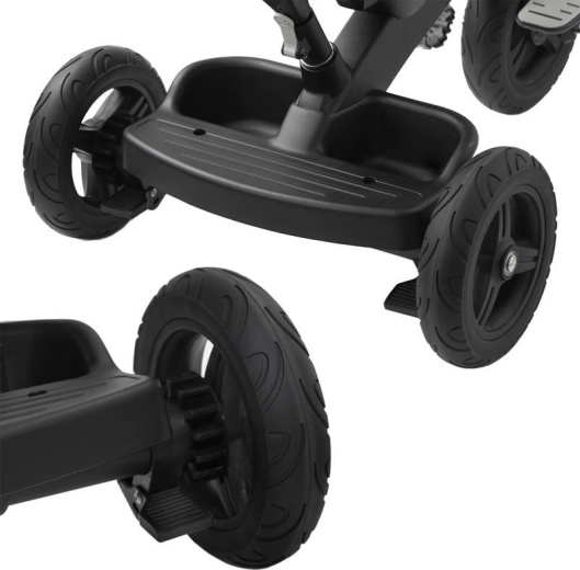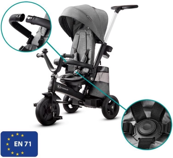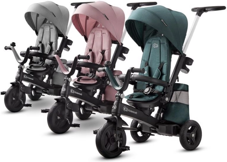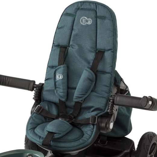 Această tricicletă premium combină avantajele unui cărucior și ale unei biciclete. Construcția modulară permite adaptarea ușoară la vârsta și abilitățile copilului – de la deplasare controlată de părinte până la pedalare independentă. Scaunul rotativ 360° (CLICK&TWIST) facilitează schimbarea direcției în câteva clipe, spătarul înalt cu posibilitate de înclinare în poziție semiînclinată oferă confort și în timpul somnului, iar centurile de siguranță în 5 puncte cu protecții mențin copilul în siguranță.