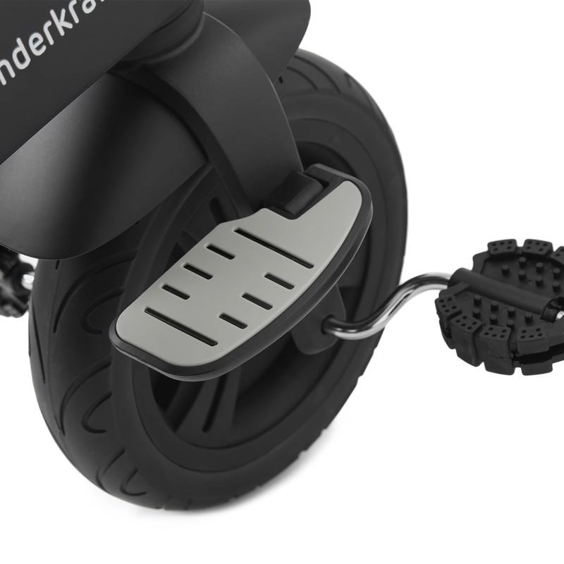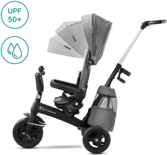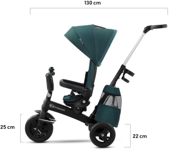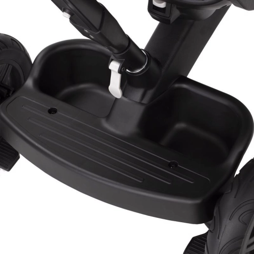 Întreținerea ușoară și accesoriile inteligente încântă în utilizarea zilnică: husa detașabilă pentru curățare facilă, plăcută barieră din piele ecologică, suporturi rabatabile pentru picioare și un set practic – suport pentru băuturi, sonerie, rucsac/geantă și coș. Tricicleta respectă standardul EN 71 și este pregătită pentru explorarea în siguranță a lumii.