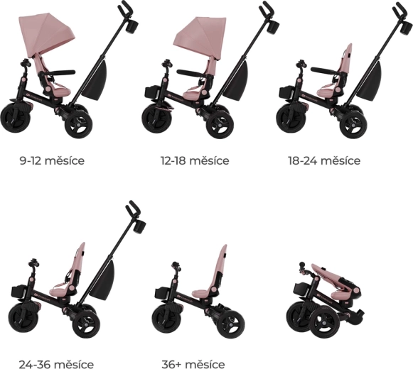 - 6 moduri de utilizare – tricicleta crește odată cu copilul, de la 9 luni la 5 ani.