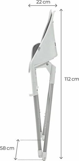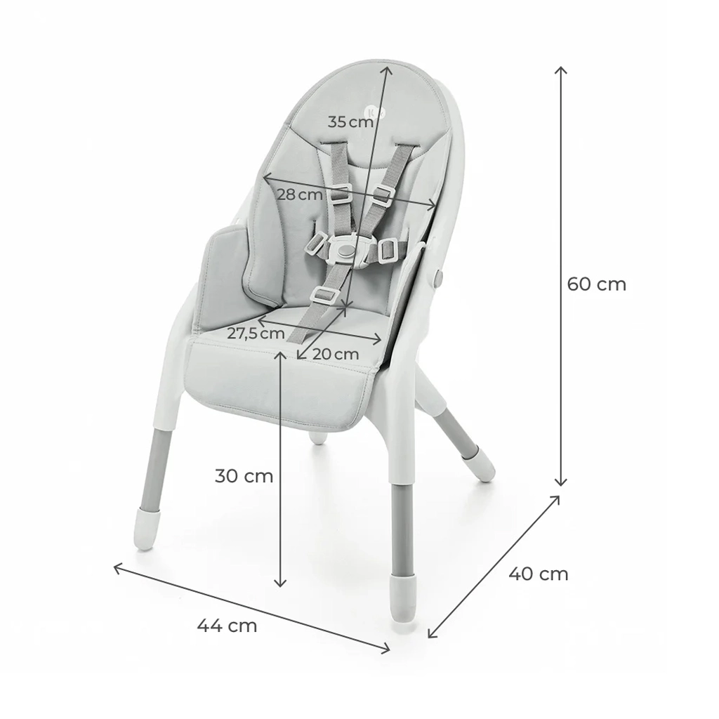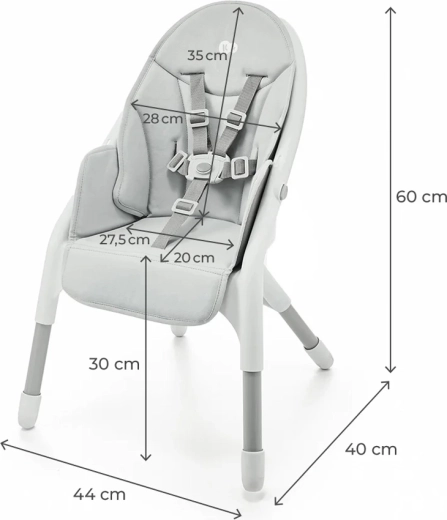 Scaun de masă pentru copii 2în1, practic, care crește odată cu copilul tău – din scaun înalt se transformă ușor într-un scăunel jos. Oferă structură stabilă, centuri în 5 puncte, tavă detașabilă, inserție căptușită impermeabilă și pliere rapidă pentru spații mici.
