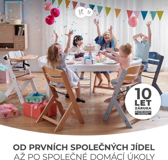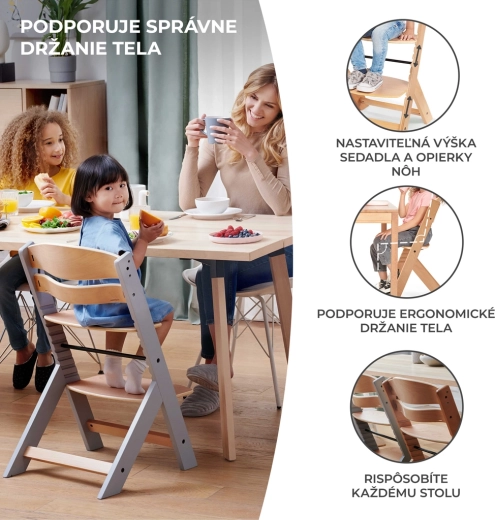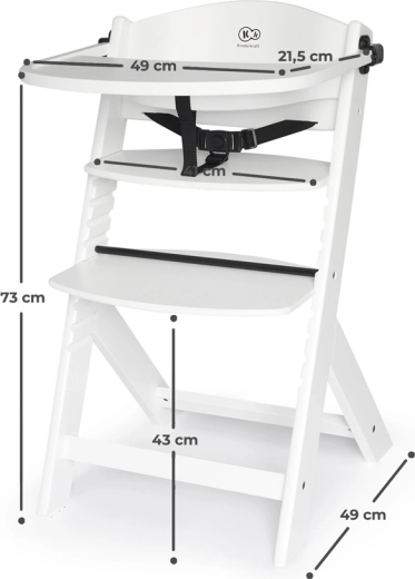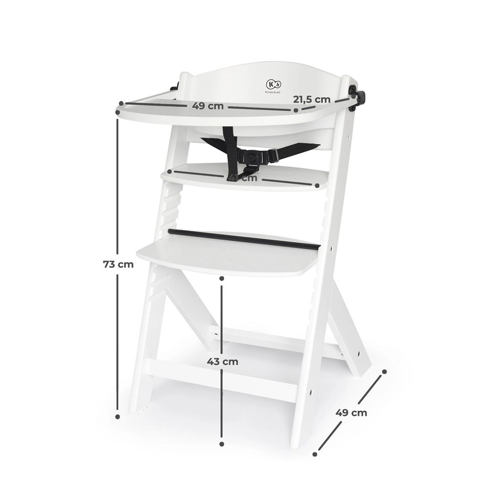 Kinderkraft Enock este un scaun înalt atemporal, care se transformă ușor într-un scaun ergonomic pentru copilul mai mare. Datorită spătarului reglabil în 5 trepte, suportului pentru picioare reglabil și șezutului lat, se adaptează perfect vârstei și înălțimii copilului. Fagul masiv și placajul de calitate asigură stabilitate excepțională și durată lungă de viață.