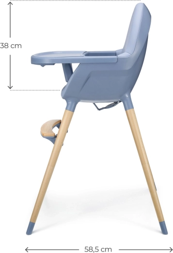 Picioarele stabile din fag cu capace antiderapante, centurile de siguranță în 5 puncte și bara dintre picioare asigură un nivel ridicat de siguranță. Spătarul ergonomic, șezutul lat și adânc și suportul de picioare reglabil oferă confort atât la masă, cât și la joacă. Mânerul integrat în spătar permite transportul ușor cu o singură mână.