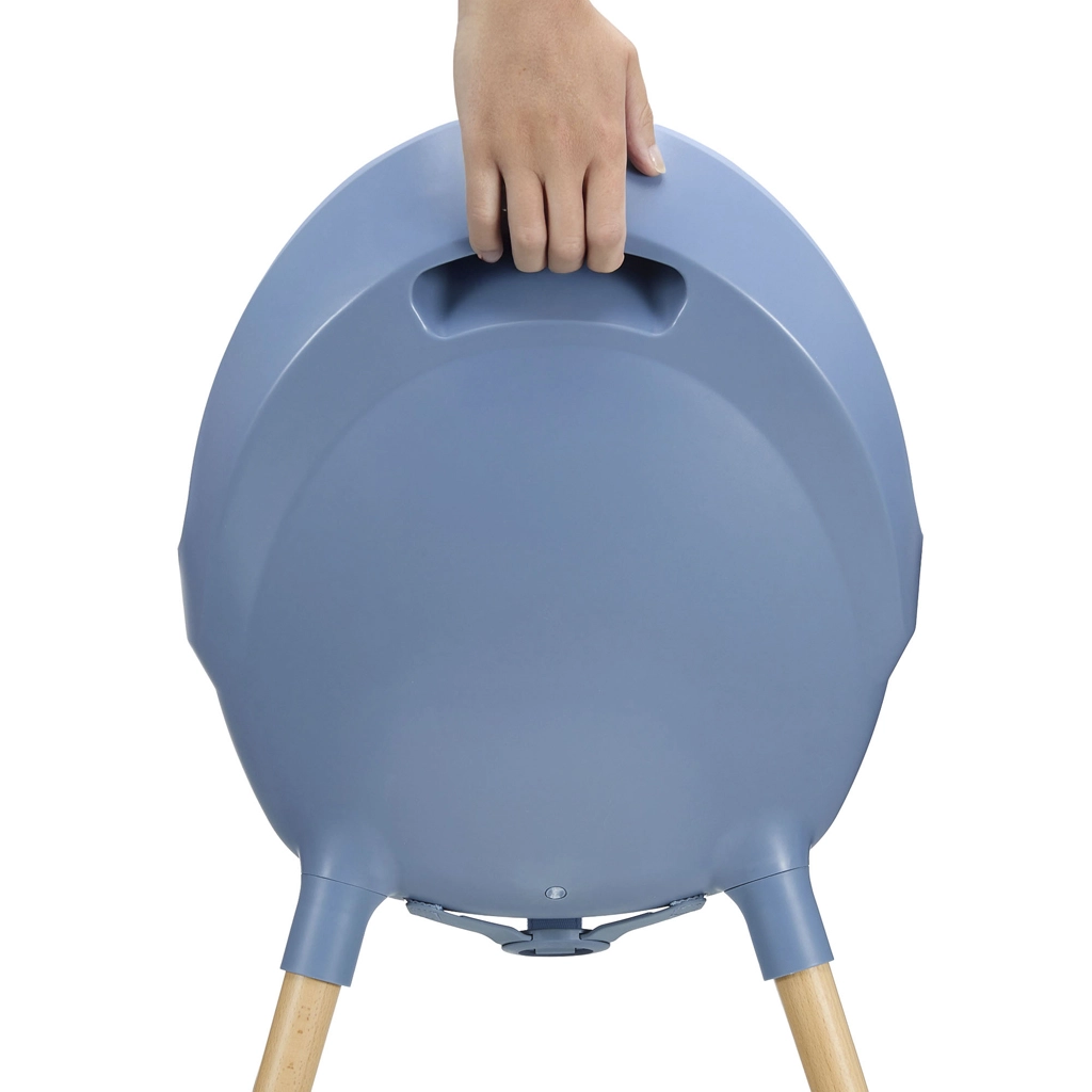 Tăvița dublă se poate regla în mai multe poziții, iar partea superioară se scoate ușor pentru spălare. Suprafețele netede ale scaunului se șterg rapid – curățenia zilnică durează doar câteva secunde.