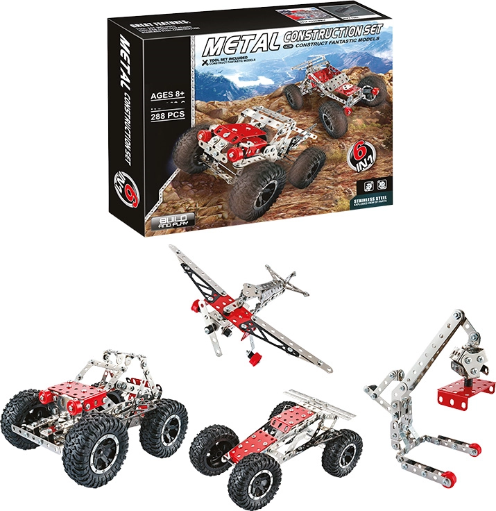 Acest set de construcție metalic, rezistent, este ideal pentru micii ingineri. Copiii pot asambla un avion, o mașină și alte modele, sau își pot lăsa imaginația liberă pentru a crea propriile construcții originale. Piesele sunt concepute pentru conectare și deconectare ușoară, ceea ce asigură joacă fluentă și o durată de viață îndelungată.