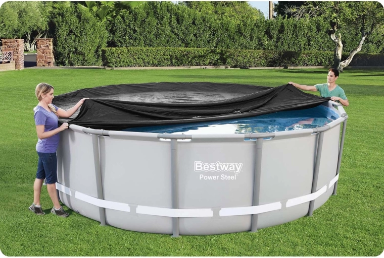 Cu ajutorul șnururilor/benzii de strângere, husa se strânge ușor în jurul marginii piscinei, astfel încât rămâne fixată chiar și pe vânt. Utilizarea regulată a husei reduce semnificativ cantitatea de frunze și impurități din apă și, în același timp, limitează evaporarea, contribuind la economisirea substanțelor chimice și a timpului petrecut cu curățarea.