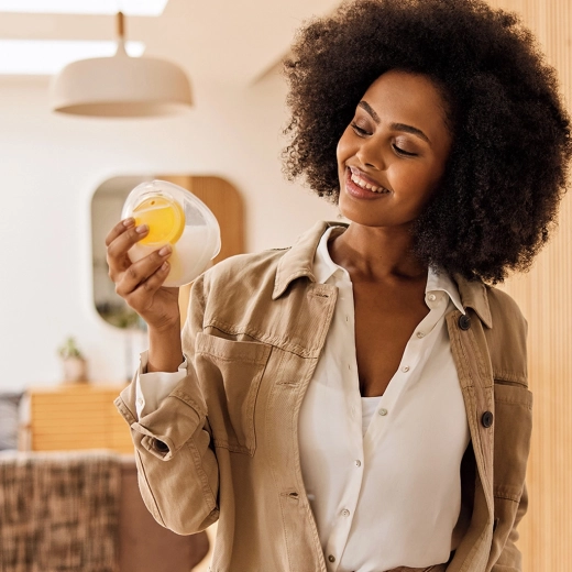 Recipientul transparent, cu formă anatomică, reduce presiunea asupra țesutului mamar, susține un flux eficient al laptelui și încape confortabil în majoritatea sutienelor pentru alăptare. Doar 3 piese pentru curățare rapidă, potrivite și pentru mașina de spălat vase.