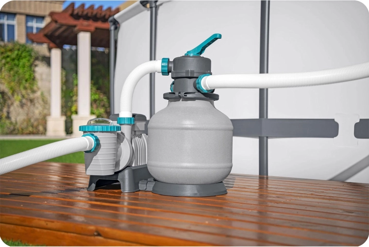 Filtrarea cu nisip BESTWAY 8,3 m³/h este o soluție fiabilă pentru piscine supraterane medii și mari. Datorită pompei performante și mediului filtrant de nisip de calitate, captează eficient impuritățile și asigură apă curată și limpede. Construcția din plastic rezistent este anticorozivă și proiectată pentru o durată lungă de viață în condiții exterioare solicitante.