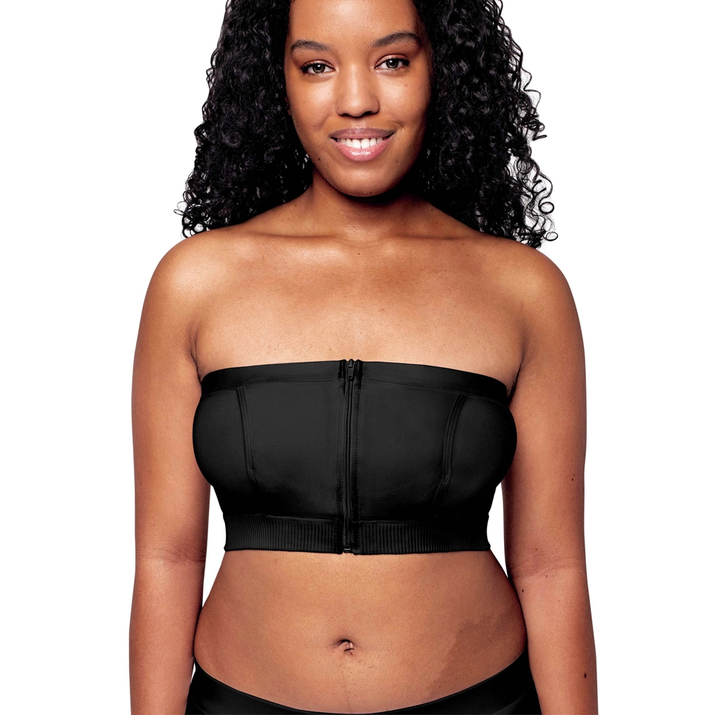 Croiala fără bretele, cu panouri structurate și tiv elastic inferior, asigură stabilitate, confort și acoperire completă a mameloanelor sub haine.