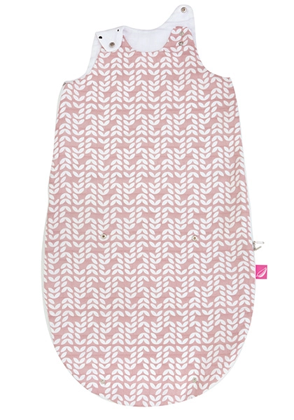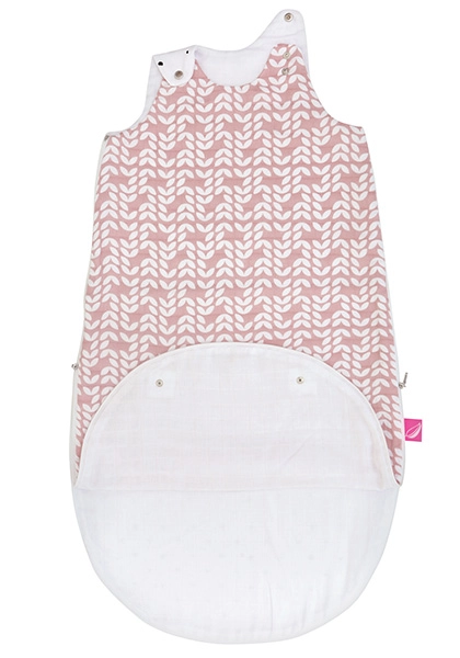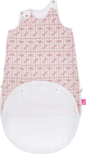 Detaliile gândite practic, precum capsele de pe umeri pentru micșorarea deschiderii la gât și prelungitorul inferior cu capse, permit folosirea în două mărimi: 3–6 luni când partea de jos este închisă și 6–18 luni când este deschisă. Sacul este confecționat din trei straturi de muselină 100% bumbac fără umplutură – delicat, pufos și blând cu pielea sensibilă.