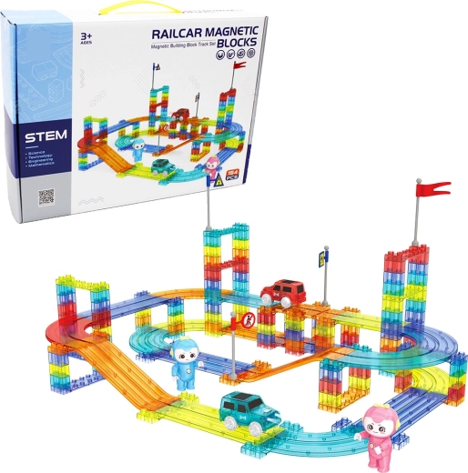 Experimentați distracție rapidă și construcție creativă cu pista de curse magnetică din 154 de piese și două mașini electrice. Datorită conexiunilor magnetice, veți asambla ușor o pistă stabilă în forme variate. Plasticul și metalul de calitate asigură durată lungă de viață și joacă în siguranță pentru copii de la 3 ani.