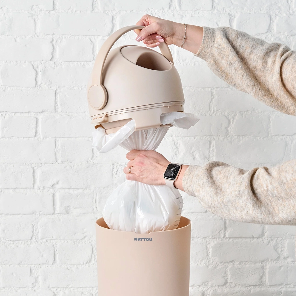 Datorită volumului de 20 de litri și capacității de până la 25 de scutece, este ideal pentru utilizarea zilnică. Coșul este fabricat din materiale rezistente PP și ABS, se curăță ușor cu săpun și nu necesită cartușe de schimb speciale – funcționează cu orice pungi de plastic obișnuite, fiind astfel atât economic, cât și mai ecologic.