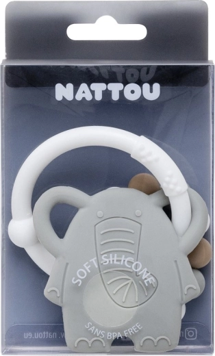 Jucăria practică de dentiție din silicon NATTOU Lapidou în formă de elefănțel aduce alinare în timpul erupției primilor dinți. Este compusă din trei părți diferite pentru o stimulare variată a gingiilor, poate fi folosită și ca zornăitoare simplă și, datorită formei ergonomice, susține dezvoltarea motricității fine. Fabricată din silicon fără BPA sigur, potrivită de la 4 luni.