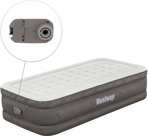 Pompa electrică integrată de 220–240 V asigură pregătirea completă pentru somn în 3–4 minute. Operare ușoară și dezumflare rapidă pentru depozitare compactă.