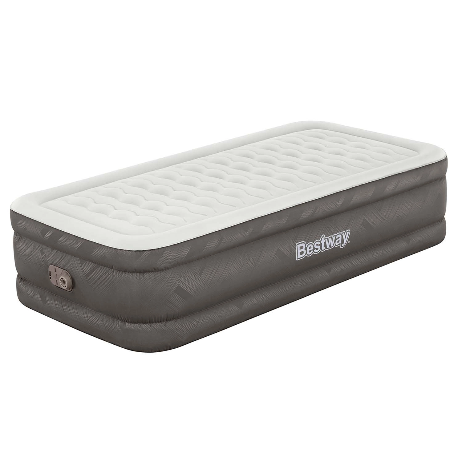 Bucurați-vă de confortul unui pat adevărat oriunde v-ați afla. Această saltea gonflabilă de o persoană BESTWAY, cu dimensiunile 191 × 97 × 46 cm, oferă o înălțime plăcută, o construcție stabilă și o umflare rapidă datorită pompei electrice integrate de 220–240 V. Suprafața este moale și plăcută la atingere, în timp ce întăriturile interne mențin salteaua fermă și stabilă ca formă pe tot parcursul nopții.