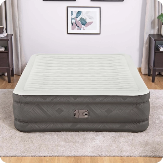 Pompa integrată de 220–240 V umflă salteaua în aproximativ 5 minute. Este disponibilă și opțiunea de utilizare a unei pompe manuale/pe picior tradiționale.