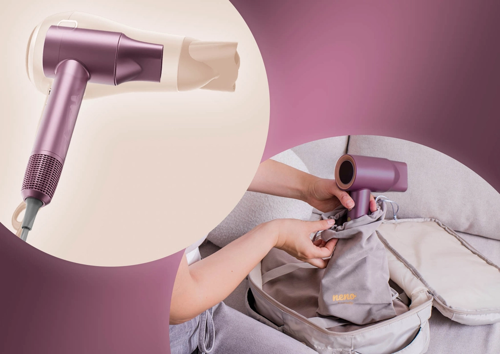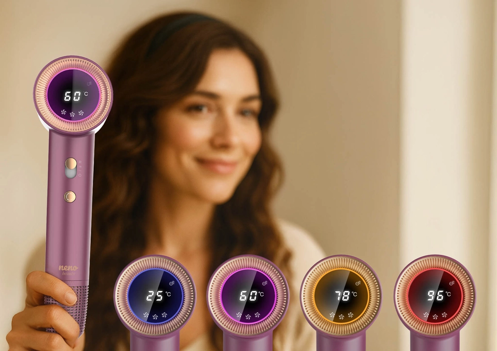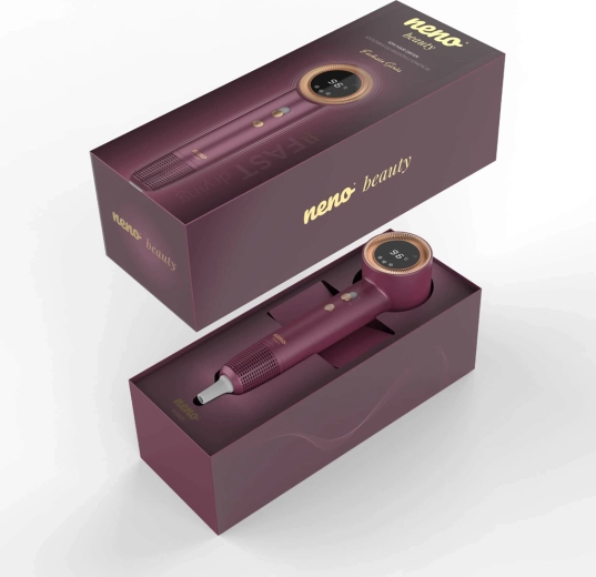 Neno Beauty Silvia îmbină tehnologia modernă cu confortul zilnic. Datorită ionizării avansate, elimină electricitatea statică, sigilează cuticulele și lasă părul neted și strălucitor. Un senzor inteligent monitorizează temperatura de până la 100× pe secundă, protejând părul de supraîncălzire și deteriorare. Afișajul LED cu inel color indică clar atât temperatura, cât și viteza fluxului, astfel încât ai controlul coafării dintr-o privire.