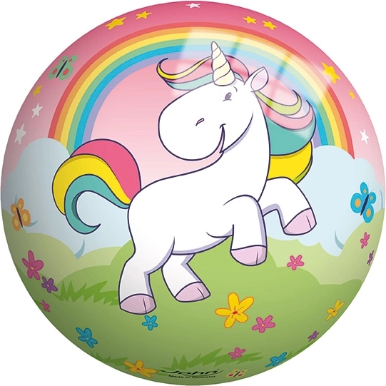 Bucurați-vă de multă distracție cu această minge colorată cu imprimeu cu unicorni. Este ideală nu doar pentru copii, ci și pentru toți iubitorii de motive vesele.