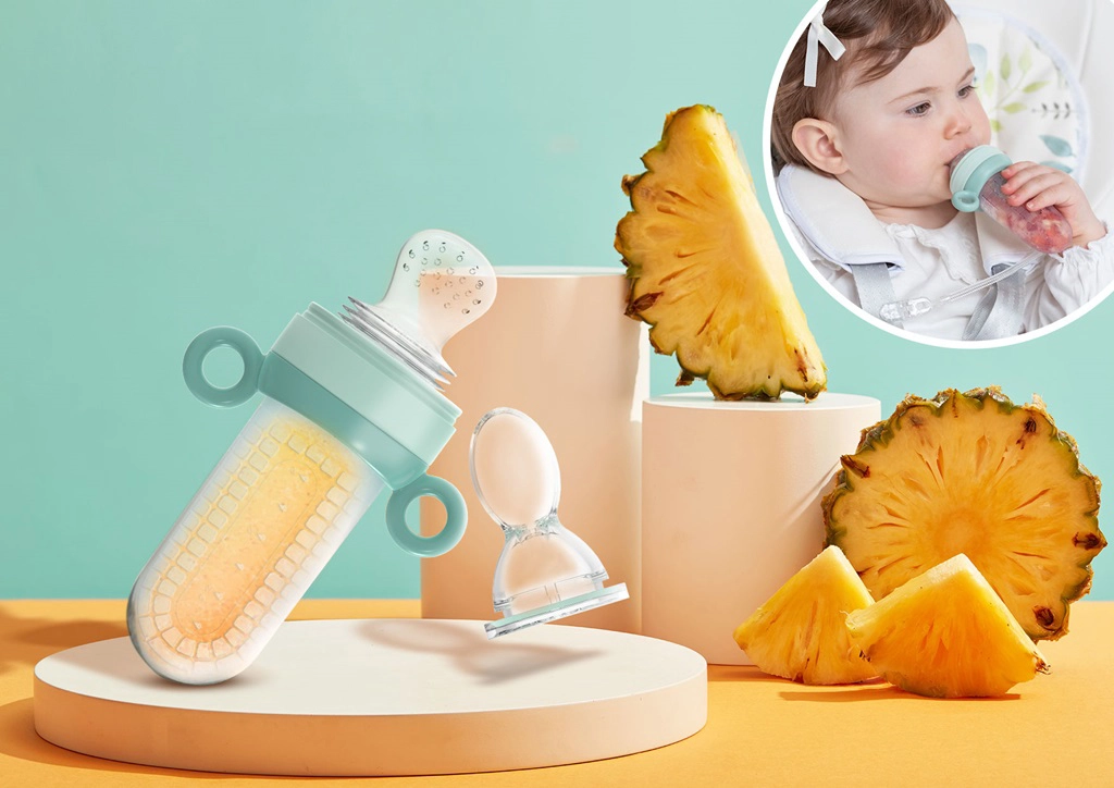 Capsula din silicon moale, cu orificii mici, permite copilului să guste în siguranță fructe și legume fără riscul bucăților mari. Încurajează autonomia și curiozitatea la masă.