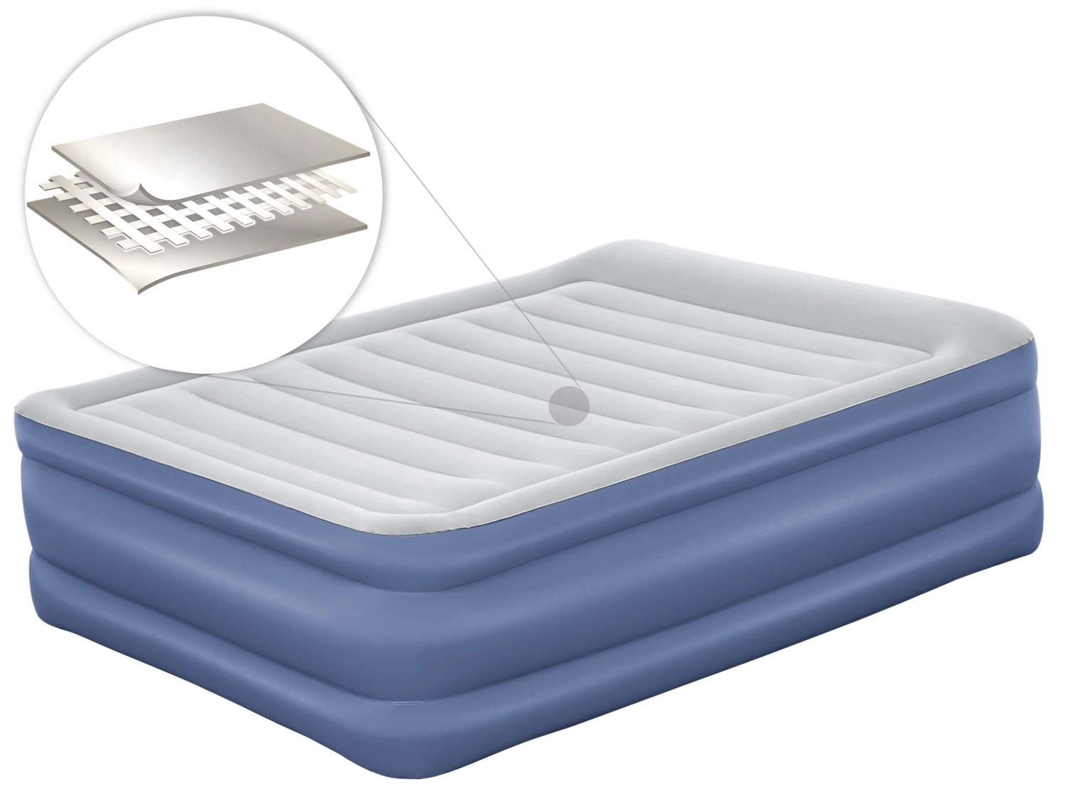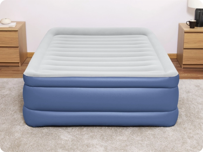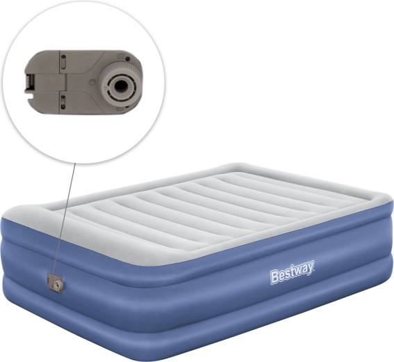 Pompa integrată de 220–240 V umflă și dezumflă rapid salteaua. La nevoie se poate folosi și o pompă externă tradițională.