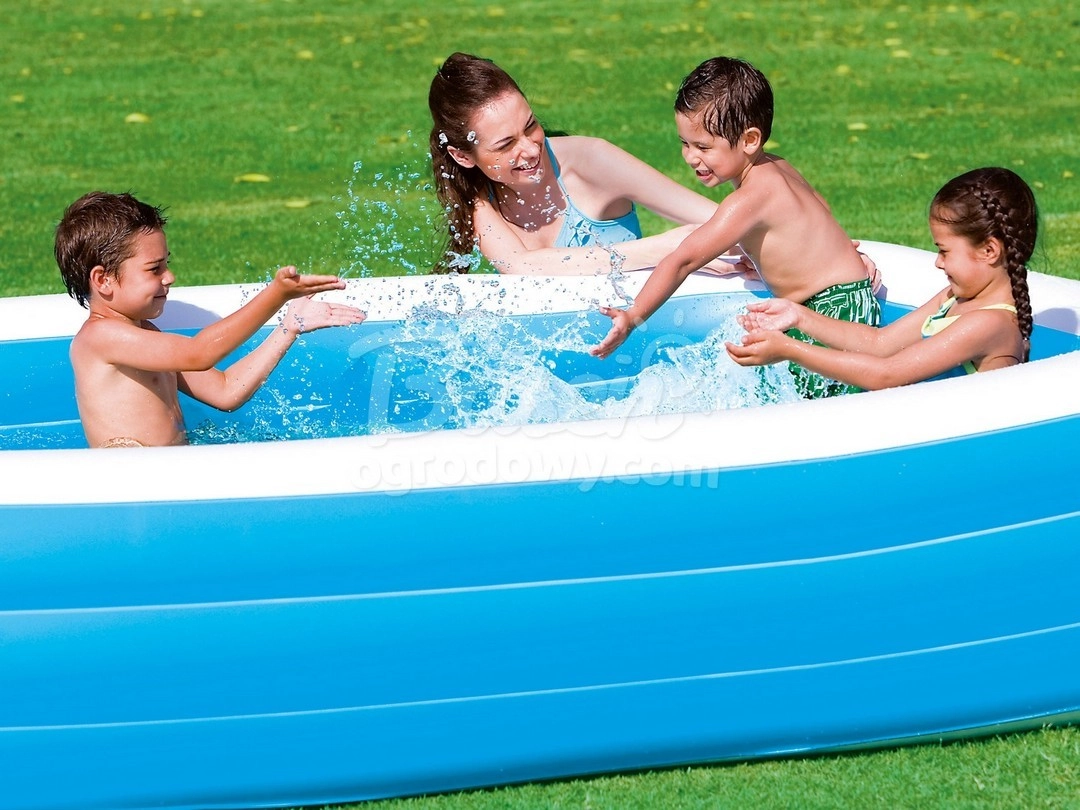 Dimensiunile de 305 × 183 × 56 cm oferă suficient spațiu atât pentru joaca copiilor în apă, cât și pentru relaxarea adulților în grădină.