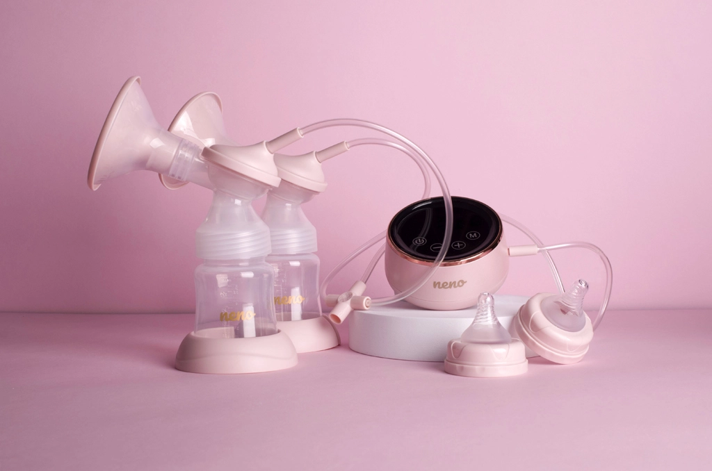 NENO Bella Twin este o pompă electrică dublă, compactă și fără fir, concepută pentru confort și eficiență maxime. Inserțiile din silicon cu formă ergonomică protejează pielea sensibilă și aderă excelent la diferite tipuri și mărimi de sâni. Display-ul digital clar facilitează controlul și oferă informații despre timp, moduri și starea bateriei.
