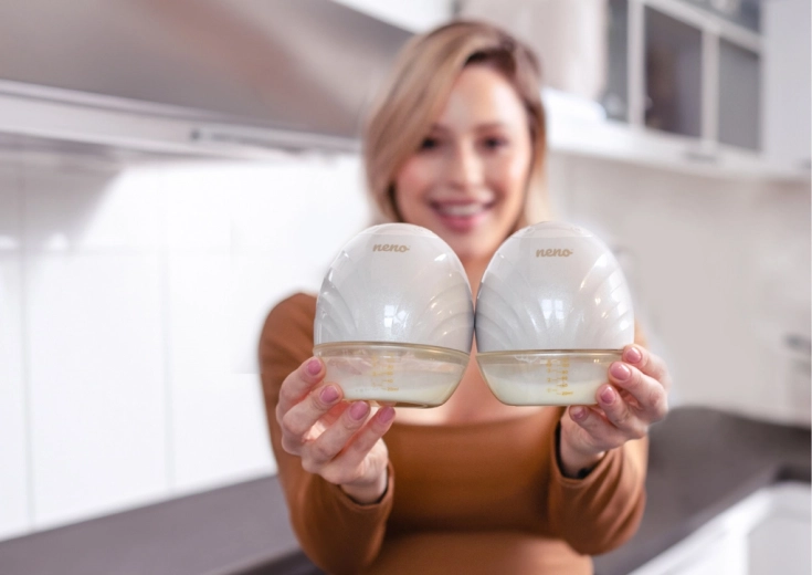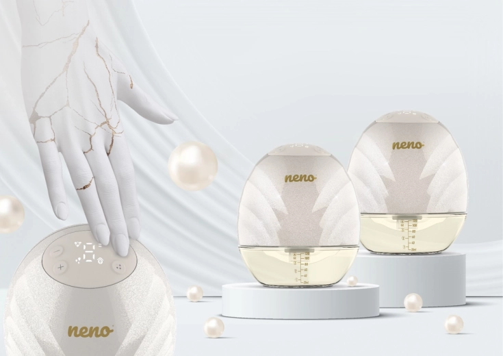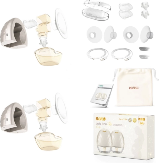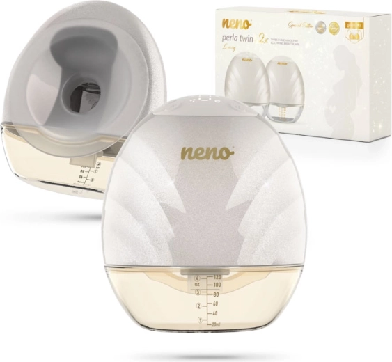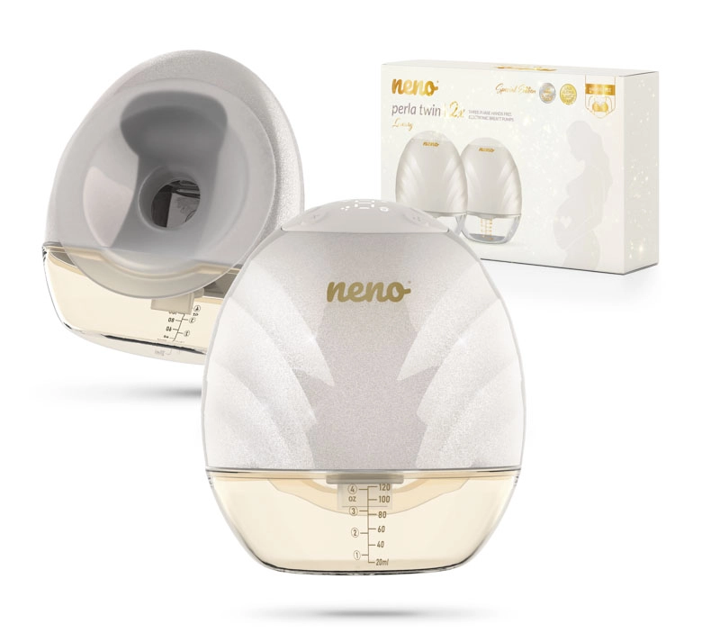 Neno Perla Twin este o pompă de sân dublă, fără fir și handsfree, modernă, care îți permite să extragi confortabil din ambii sâni simultan. Datorită designului ușor și compact, se potrivește direct în cupa sutienului pentru alăptare și îți lasă mâinile libere pentru tot ce contează. Oferă 3 faze de pompare cu 9 niveluri de intensitate, ecran mamar anatomic la un unghi de 105° pentru un flux natural al laptelui și accesorii bogate, inclusiv reductoare de 19 și 22 mm pentru o potrivire perfectă.