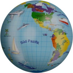 O minge sportivă ușoară și distractivă pentru copii, cu motiv de glob, oferă material rezistent la apă, diametru de 23 cm și utilizare universală în grădină, pe teren și în piscină. Datorită posibilității de reumflare, rămâne în stare perfectă pentru mult timp.