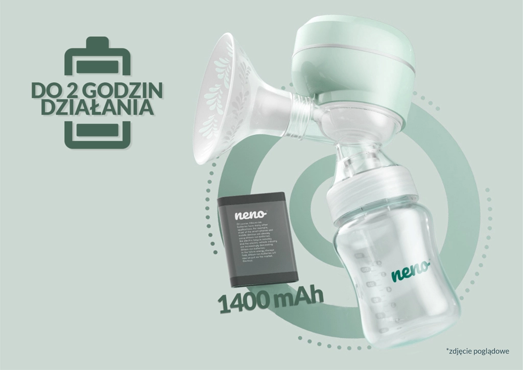 - Pompa Neno Uno, biberon pentru lapte cu tetină și capac, suport pentru biberon, 2× valvă, pungi pentru stocarea laptelui, scut pentru sân 24 mm, capac pentru protecțiile mamelonare, cablu USB‑C, manual
