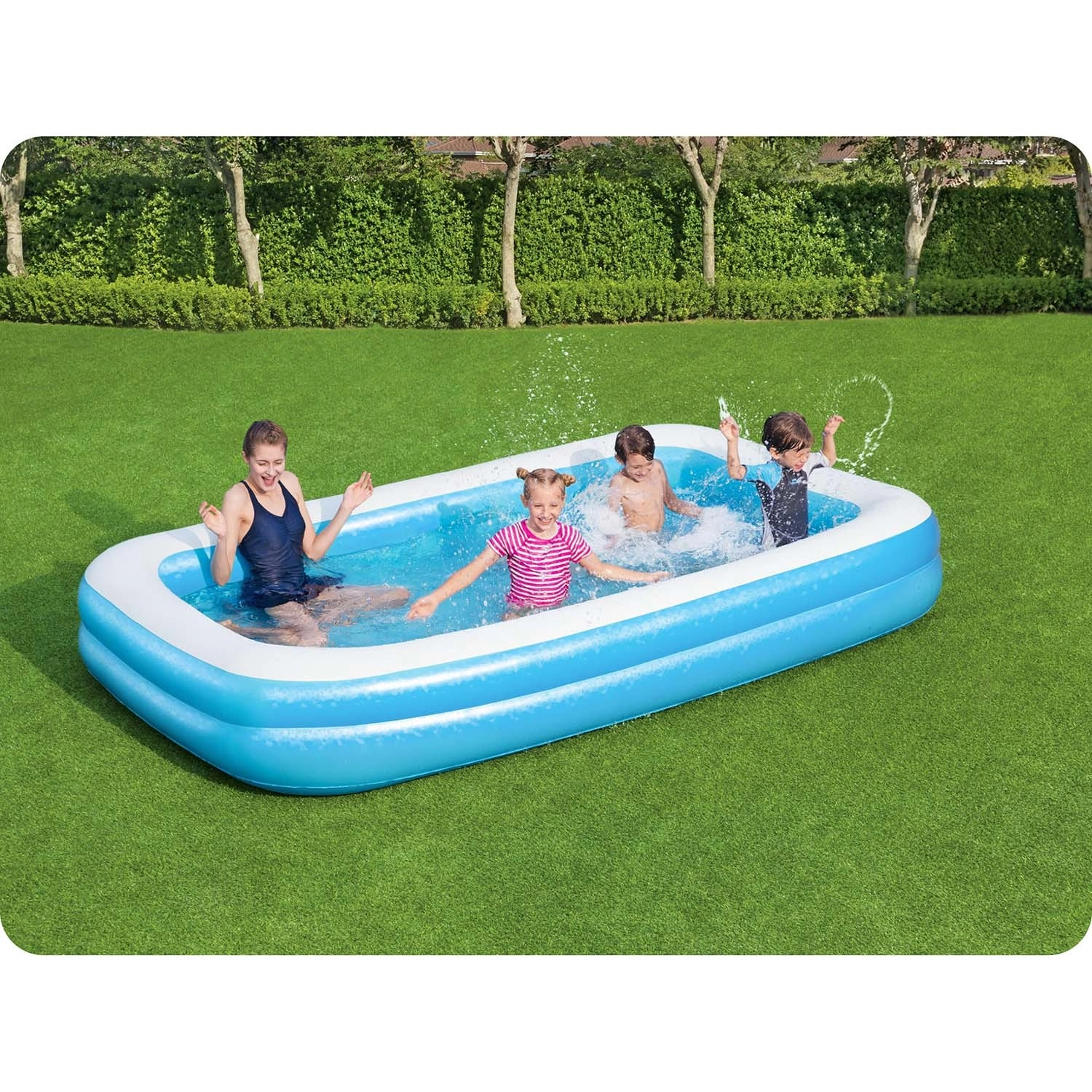 Dimensiunile de 305 × 183 × 46 cm și volumul de 850 l oferă suficient spațiu pentru distracție acvatică atât copiilor, cât și adulților.