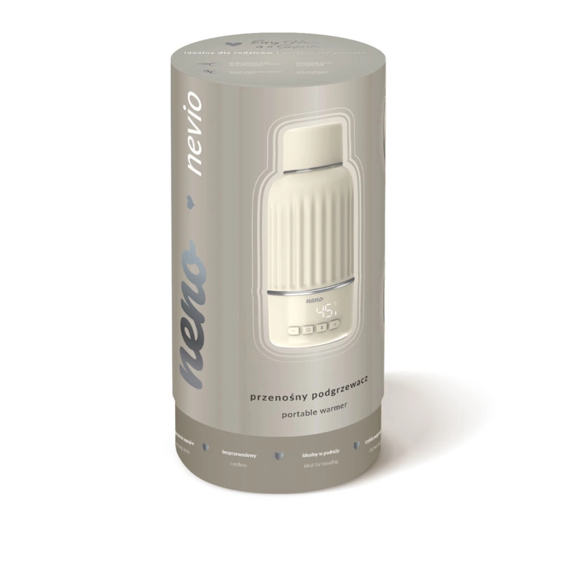 Neno Nevio este un ajutor inteligent pentru hrănirea comodă oricând și oriunde. Fără cabluri, cu control intuitiv și afișaj digital pentru setarea precisă a temperaturii, încălzește 150 ml de apă la 40 °C în doar 3 minute. Capacitatea mare de 500 ml și etanșarea dublă sigură îl transformă într-o soluție excelentă pentru călătorii și pentru acasă.