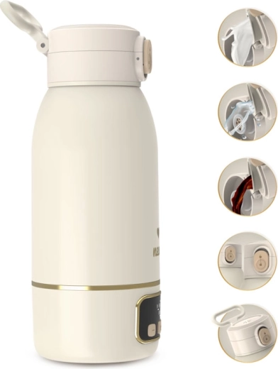 Dispozitivul încărcat asigură până la 8 încălziri, astfel nu aveți nevoie de priză și puteți pregăti laptele pentru bebeluș oricând și oriunde.