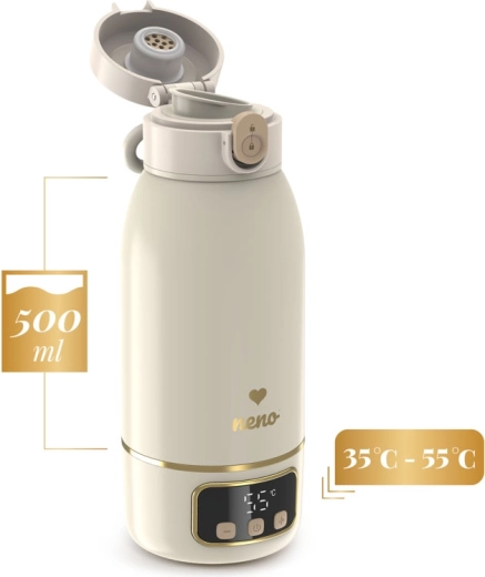 Călătoriți fără griji cu încălzitorul portabil Neno Savia, care încălzește rapid laptele sau apa, menține o temperatură constantă de 35–55 °C și oferă până la 8 cicluri de încălzire cu o singură încărcare. Datorită dimensiunilor compacte, funcționării fără fir, capacului etanș și capacității de 500 ml, este ideal pentru excursii, pentru cărucior și chiar la bordul avionului.