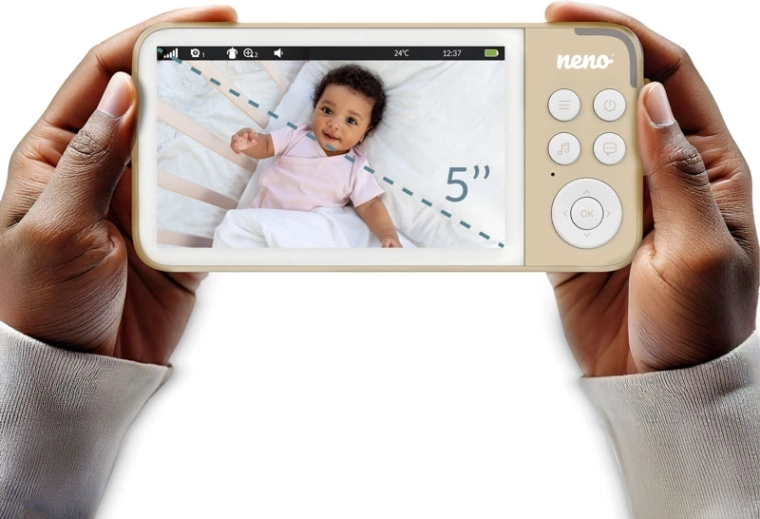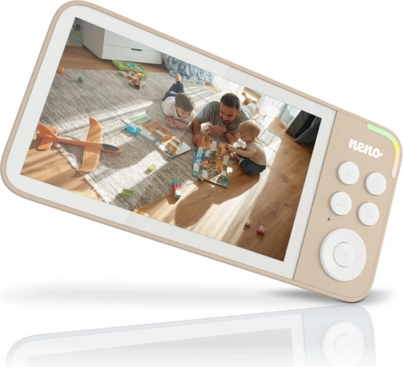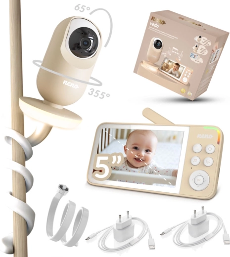 Neno Vedo Cream este un monitor video fiabil care îți oferă o imagine completă a celor întâmplate în camera copilului. Ecranul color mare de 5'' oferă o imagine clară, iar modul nocturn automat redă cadre luminoase chiar și în întuneric total. Camera rotativă cu control de la distanță permite supravegherea unei zone largi, în timp ce zoom-ul 4× apropie fiecare detaliu.