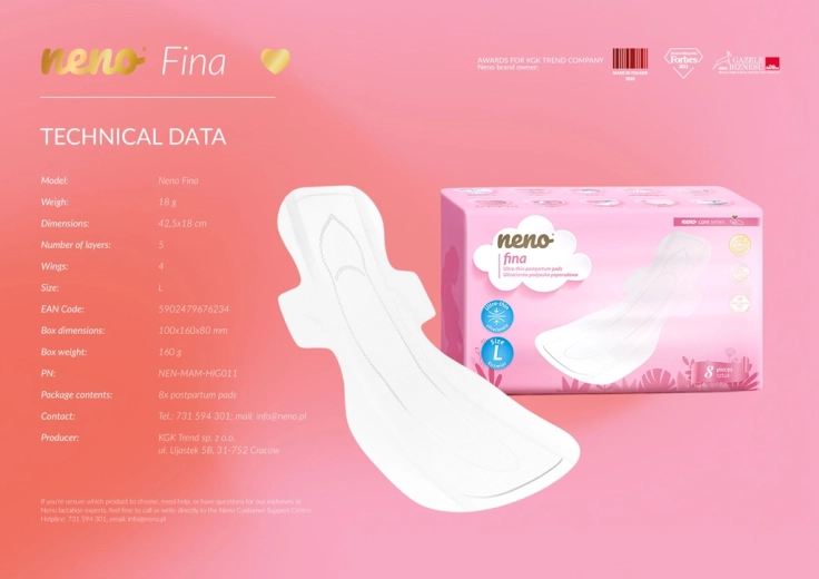 Cauți protecție fiabilă și discretă după naștere? Absorbantele postnatale Neno Fina oferă o construcție ultra subțire, capacitate mare de absorbție și formă anatomică pentru confort maxim. Datorită celor cinci straturi de protecție, suprafeței mărite de 425 × 185 mm și celor patru aripioare, rămân bine fixate, sunt respirabile și delicate cu pielea – ideale pentru perioada de după naștere și atunci când ai cerințe sporite de igienă și confort.